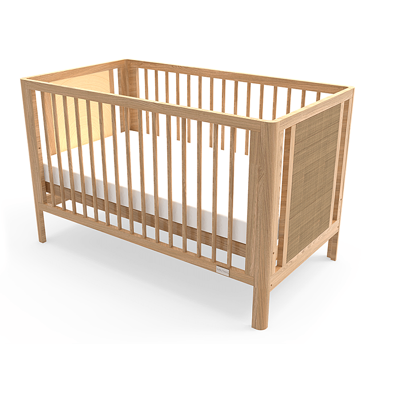 Crafted to be beautifully luxurious and unparalleled in safety, the Aliyah Rattan Cot joins the babyhood family of smooth single hand drop side cots, so now you can enjoy the natural beauty of a rattan cot whilst still giving you access to your baby, without hurting your back and keeping your baby safe.