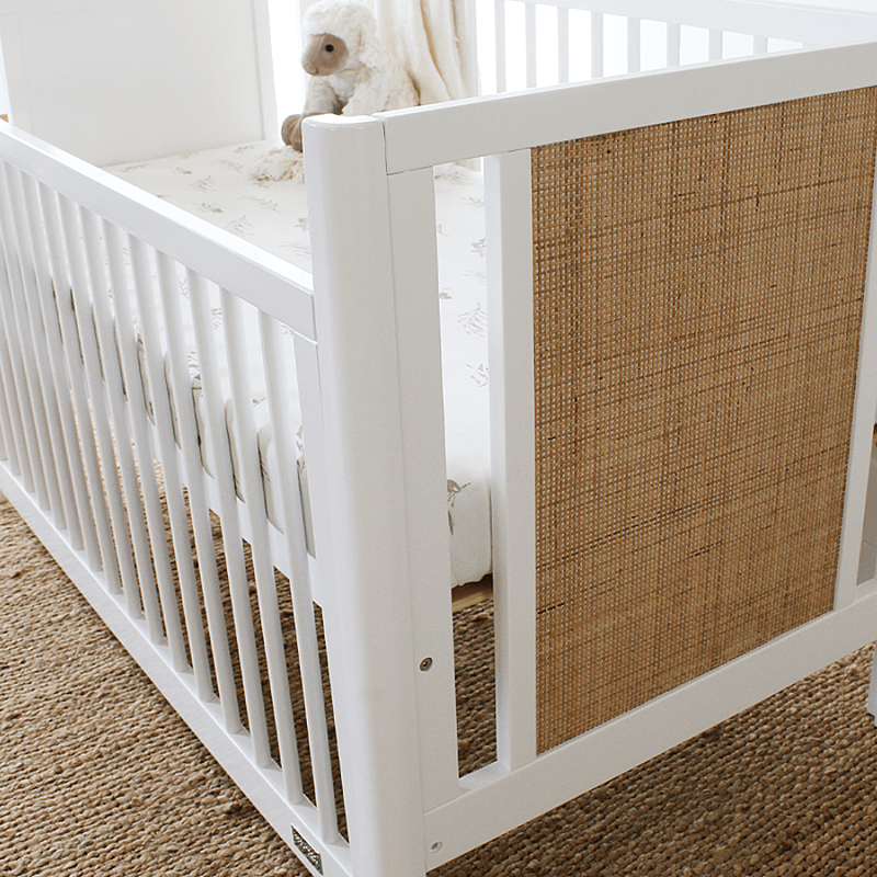 A naturally inspired rattan cot that not only looks stylish in any whimsical nursery but is good for you. Unlike other rattan styled cots, the Aliya Rattan Cot has babyhood’s famous smooth single hand drop side – so no heavy bending for you and extra safety for baby.