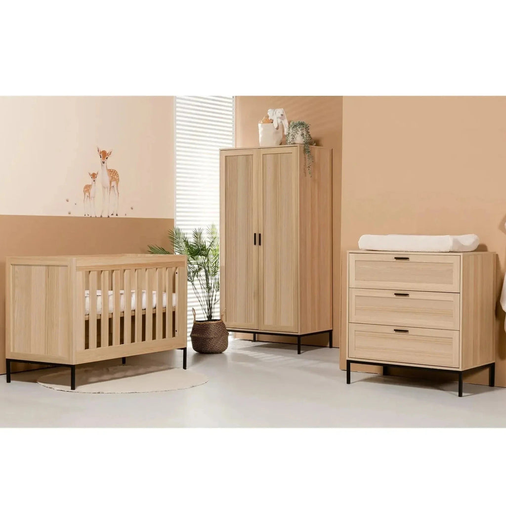 The cot provides a safe, secure, and comfortable space for your little one, designed to meet Australian safety standards. Paired with the Jakarta Chest of Drawers, you’ll enjoy both elegance and practicality, with three soft-close drawers, a detachable changer top, and a smooth woodgrain finish. Completing the bundle, the Deluxe Innerspring Mattress is trusted by parents nationwide for its comfort and safety. Constructed with Australian-made tempered springs, Dunlop foams, and a breathable cotton quilt, it ensures restful sleep and peace of mind.