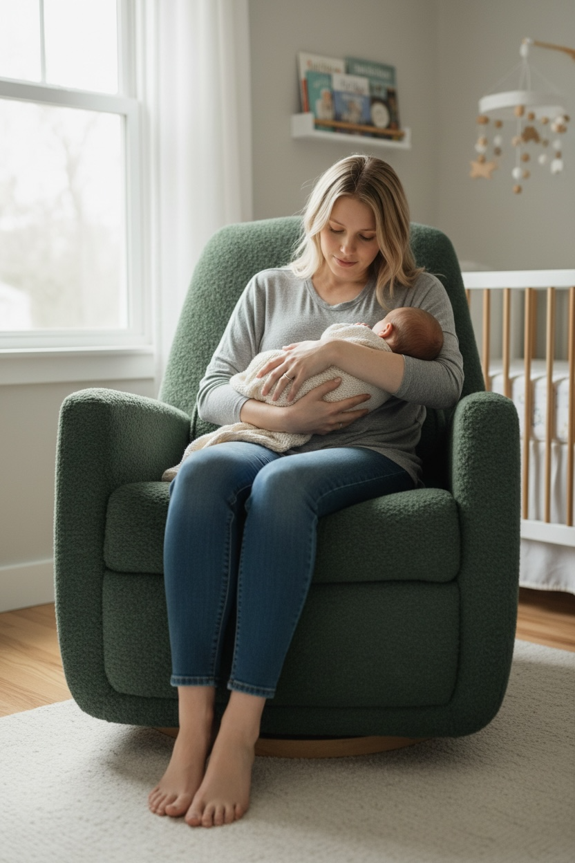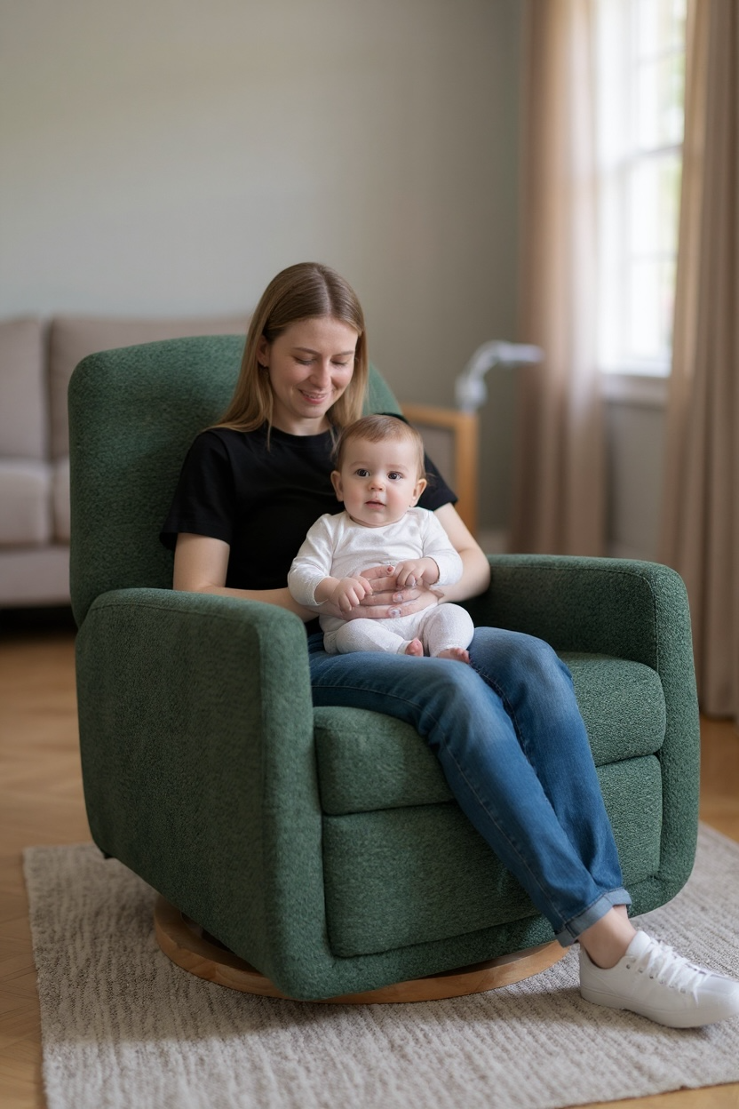 3. Swivel or Gliding Function: A swivel or gliding feature allows you to easily turn or glide the chair from side to side, which can be handy for reaching items or soothing your baby. This feature can also help reduce any strain on your body when feeding your little one.